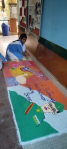 रंगोली प्रतियोगिता में प्रथम स्थान लीलेश्वरी एवं यामिनी (कक्षा 9) ने प्राप्त किया। उनकी रचनात्मकता और रंगों के सुंदर संयोजन ने सभी को मंत्रमुग्ध कर दिया।