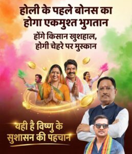 किसानों के चेहरे पर मुस्कान लाने वाला ऐतिहासिक निर्णय – मुख्यमंत्री विष्णु देव साय के नेतृत्व में होली से पहले अंतर राशि का एकमुश्त भुगतान – जयदीप गुप्ता, भाजपा नेता