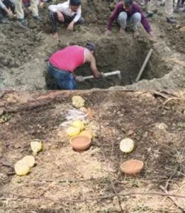बालोद।गुंडरदेही विकासखंड के ग्राम माहुद (बी) में तीन साल की दफन बच्ची प्रिया की कब्र खोदकर अज्ञात व्यक्ति ने उसका सिर गायब कर दिया। मामले की जानकारी होने के बाद से परिजनों में गुस्सा और गांव में दहशत है। कब्र के पास नींबू भी काटा और बंदन लगाया गया है। लोगों को तंत्र क्रिया करने का अंदेशा है। परिजनों ने पुलिस से बच्ची के शरीर पूरे अंग की मांग कर रहे हैं। इधर हल्दी चौकी पुलिस ने जांच शुरू कर दी है। पुलिस ने भी कब्र की खुदाई कर शरीर के बाकी हिस्से को निकाला। उसे परीक्षण के लिए राजनांदगांव मेडिकल कॉलेज भेजा गया है।